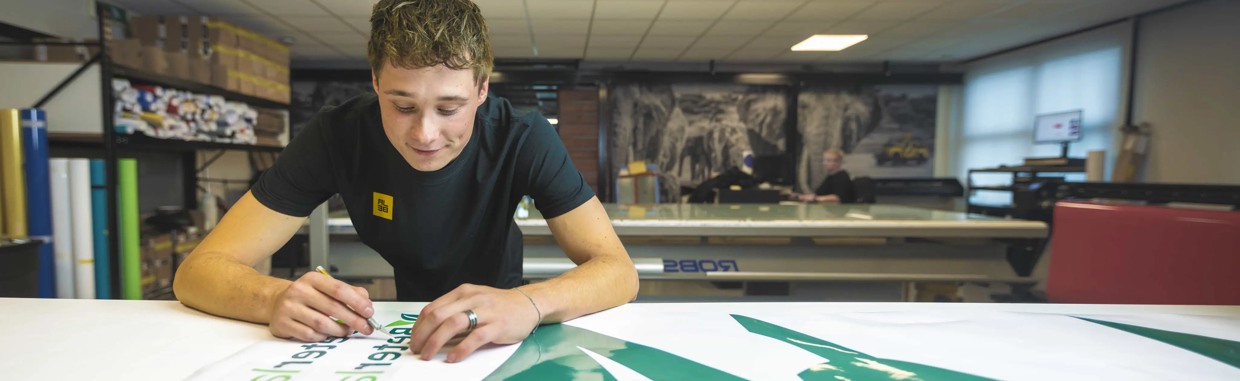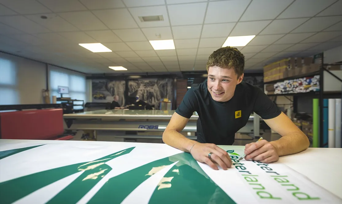 Van strakke raambelettering bij een hippe lunchzaak tot snijteksten op een opvallende bedrijfsbus: jij werkt mee aan bijna álles wat bij Jabe de deur uitgaat. Geen dag is hetzelfde! Jij houdt van precisie, bent flexibel en ziet jouw werk overal terug op straat!